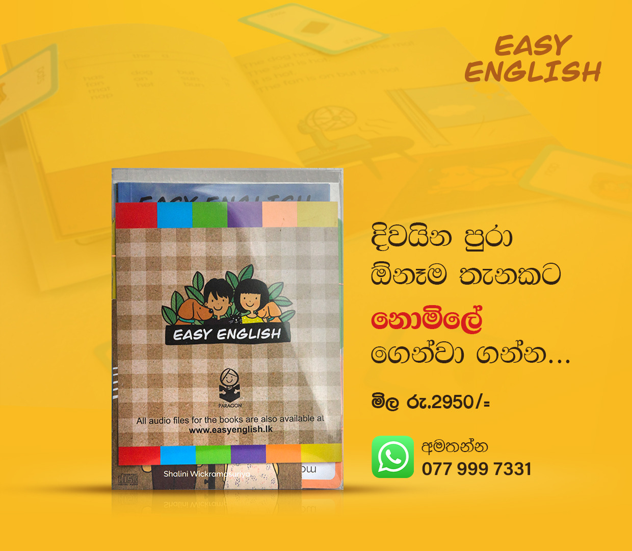 Easy English is a phonic based English language programme inspired by the success of Jolly Phonics, the Oxford Reading Tree and Read Write Inc which are used in the UK and many international schools. The programme is created for children of Sri Lanka.
